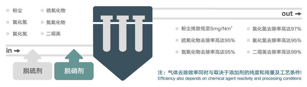 ●陶瓷纖維的耐高溫特性可實現(xiàn)高溫下處理煙氣,避開酸性氣體和水的露點,有效減少設(shè)備腐蝕,提供最佳的脫硫脫硝反應(yīng)溫度;